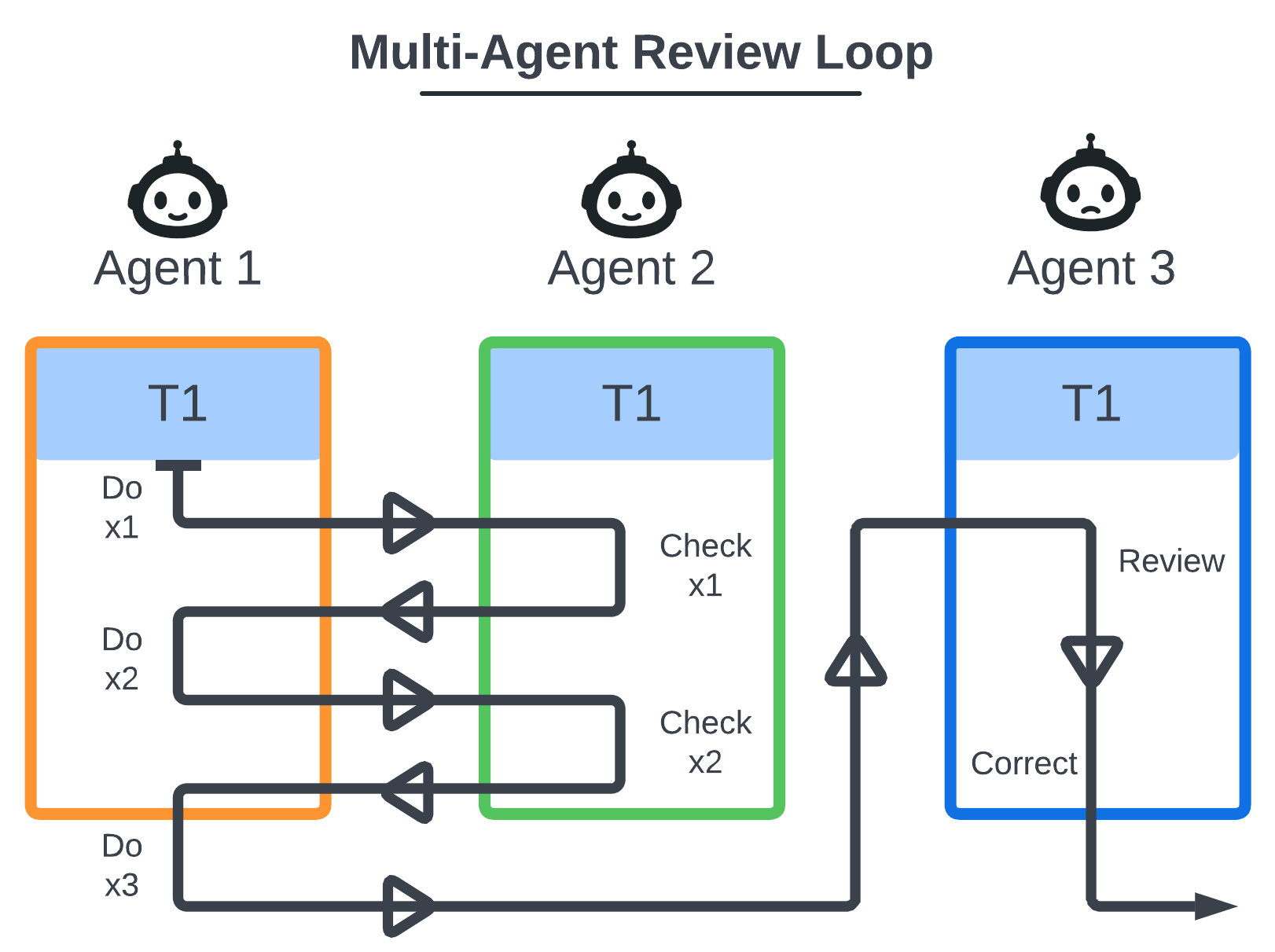All the actions taken by the system run completely without any human intervention. The multi-agent review loop is described above is visualised below.